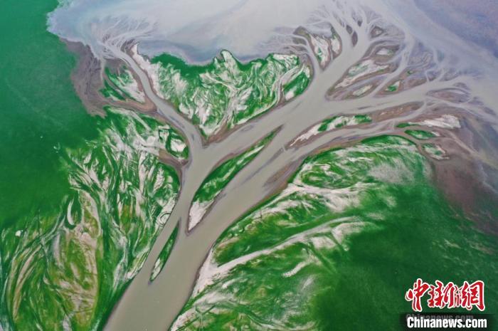 资料图:航拍江西鄱阳湖核心湖区金溪湖水域,因水位下降出现的“大地之树”。 刘占昆 摄