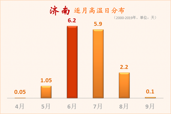 其实,根据数据,北方一些地区高温日最多的月份就在6月和7月。2000-2019年近20年数据显示,济南首个高温日出现在6月的年份最多,占11年;出现在5月占8年;2006年则早在4月30日就出现了当年的首个高温天。6月和7月是济南高温多发月,占到全年高温日数的近80%。其中平均每年6月都会出现6天以上35℃高温天。